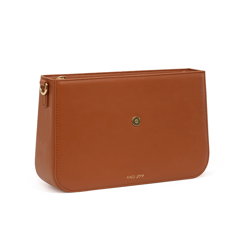 Corps de sac caramel "Tendre aventure". - Zipper intérieur et fermeture éclair en forme de coeur. - 2 poches intérieures dont une à zip. - Doublure intérieure en simili vegan rouge. - Un fermoir aimanté à l'avant pour la fermeture du sac. - 3 boutons à pression à l'arrière du sac pour clipper le rabat. À personnaliser avec les accessoires de votre choix pour créer le sac idéal. Logo "And Joy" embossé en doré à l'avant. Dimensions : Hauteur 17,5 cm x Largeur 27 cm x Profondeur 8 cm.