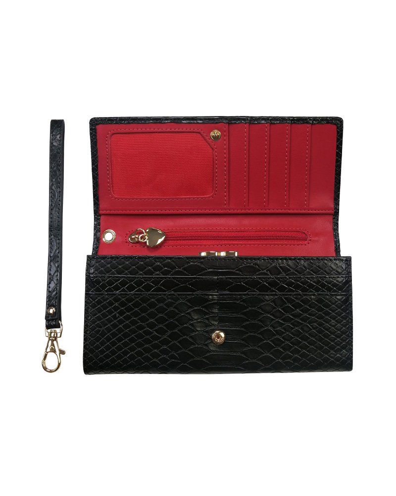 01Portefeuille en simili vegan à motif serpent, intérieur rouge.