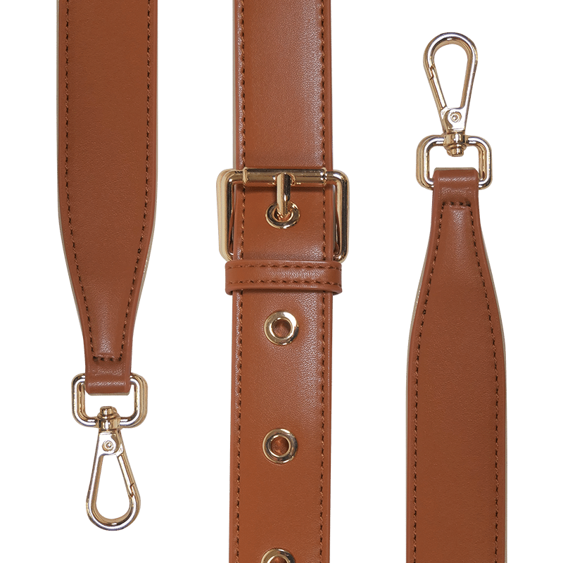 Sangle épaisse bandoulière réglable de couleur caramel. À associer avec le sac de votre choix pour créer le sac idéal. – Pinces amovibles en métal doré – Oeillets en métal doré Dimension maximale : 120 cm. Longueur ajustable.